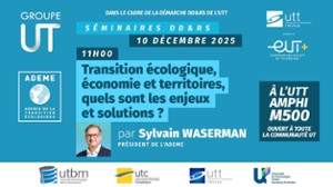 - Conférence de Sylvain Waserman : "Transition écologique, économie et territoires, quels sont les enjeux et solutions ?" - Mercredi 10 décembre 2025 à 11h à l’UTT4 décembre 2025Dans le cadre du cycle de conférences "Transmission écologique & engagement sociétal" proposé par le Groupe UT, l’Université de technologie de Troyes (UTT) a le plaisir d’accueillir Sylvain Waserman, le mercredi 10 décembre 2025 à 11h, sur le sujet "Transition écologique, économie et territoires, quels sont les enjeux et solutions ?".