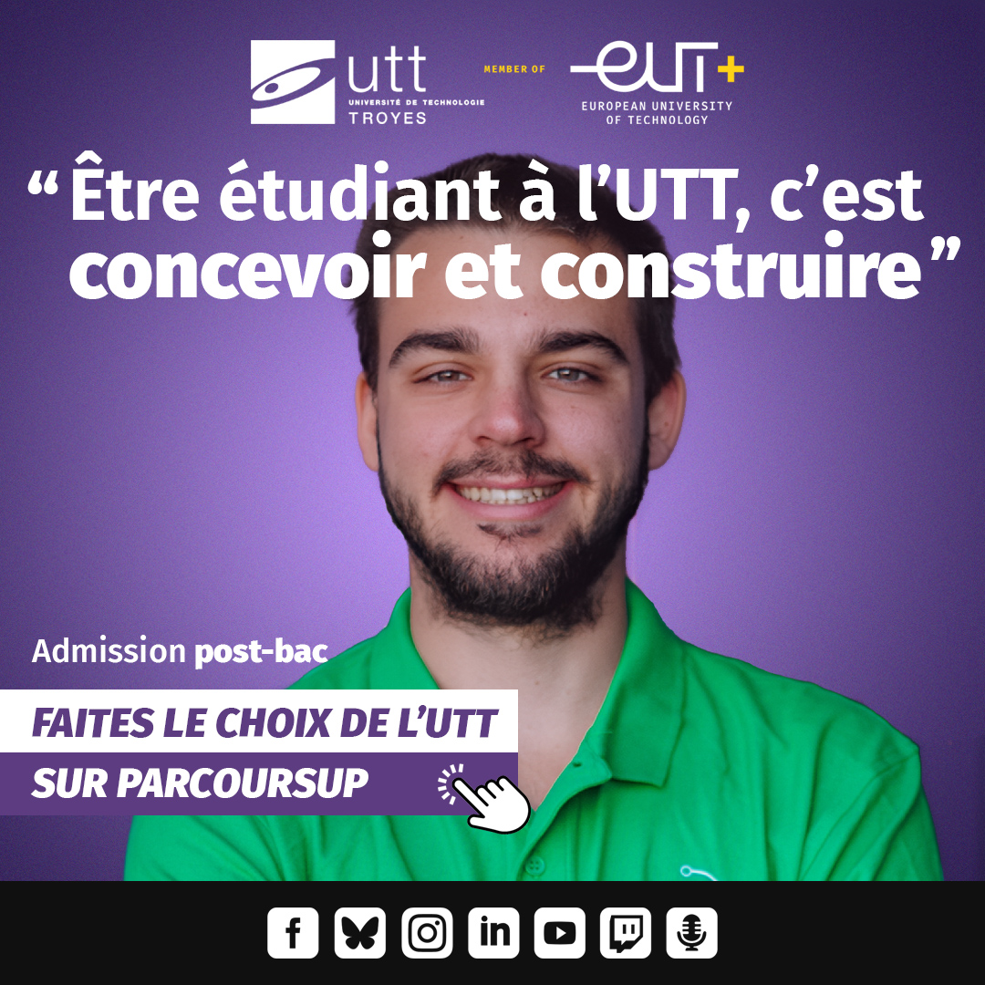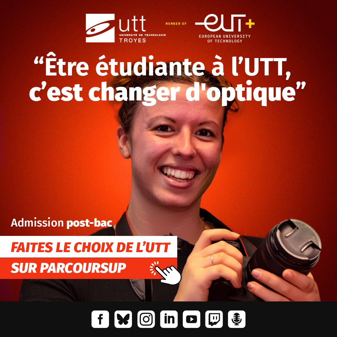 L'Université de Technologie de Troyes vous propose des rendez-vous réguliers en ligne sur les réseaux sociaux sur différents sujets : tronc commun, découverte de nos formations, modèle pédagogique, cursus d’élèves ingénieurs, démarches d'admission, relations internationales, insertion professionnelle, contenu des formations, stages, vie étudiante, associations, sports... Nos étudiants, nos enseignants-chercheurs, nos diplômés et notre responsable promotion sont à votre disposition pour répondre à toutes vos questions.
