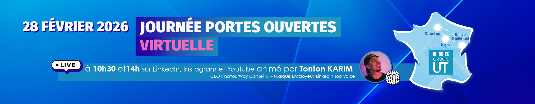 - 14h00 : Live spécial UTT animé par Tonton Karim, CEO FindYourWay, Conseil RH - Marque Employeur, LinkedIn Top Voice