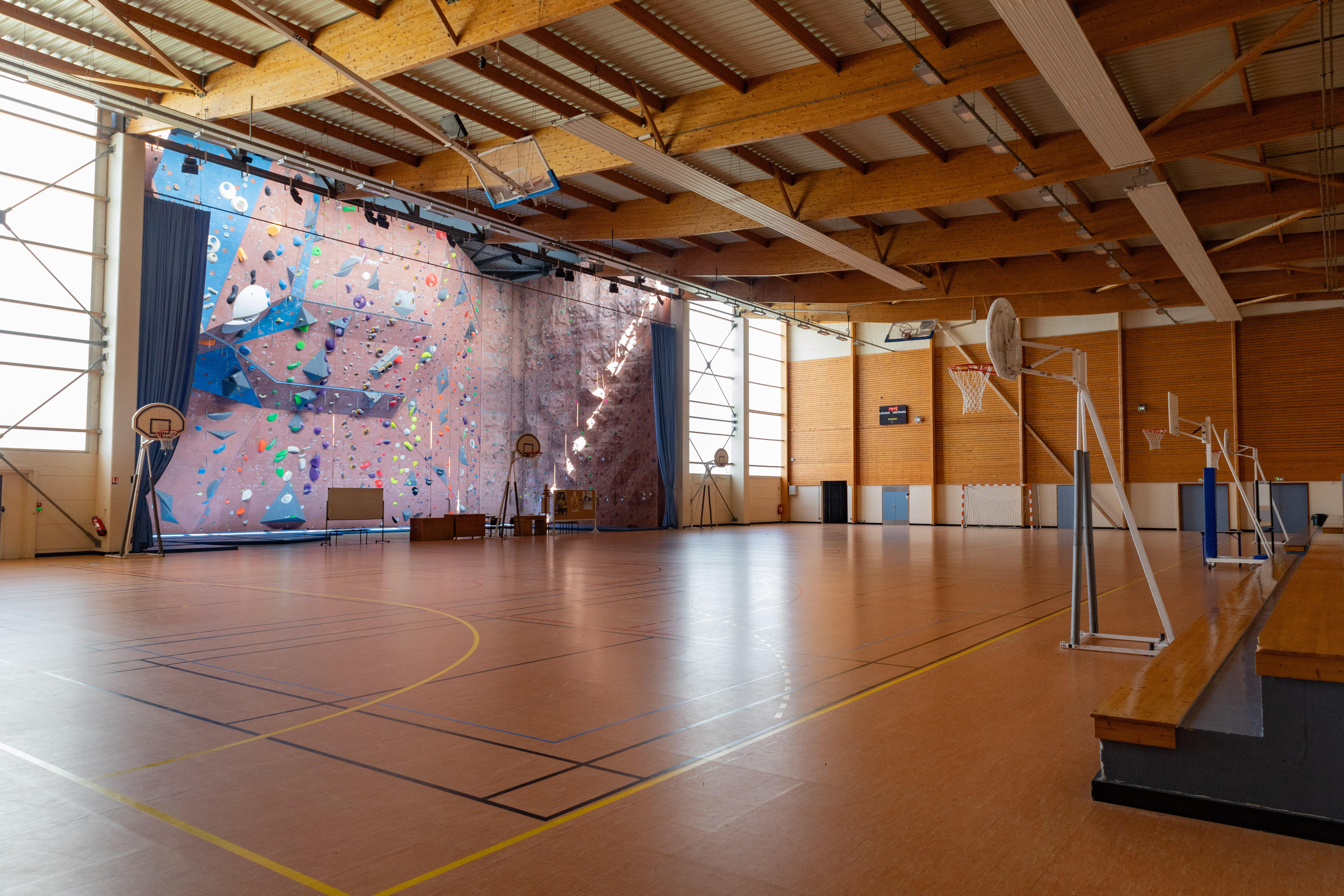 - Un mur d'escalade de catégorie nationale. Cette structure artificielle de 13 mètres de haut sur 30 mètres de large permet aux débutants comme aux confirmés de grimper sur des voies ouvertes de niveaux de difficultés variables.