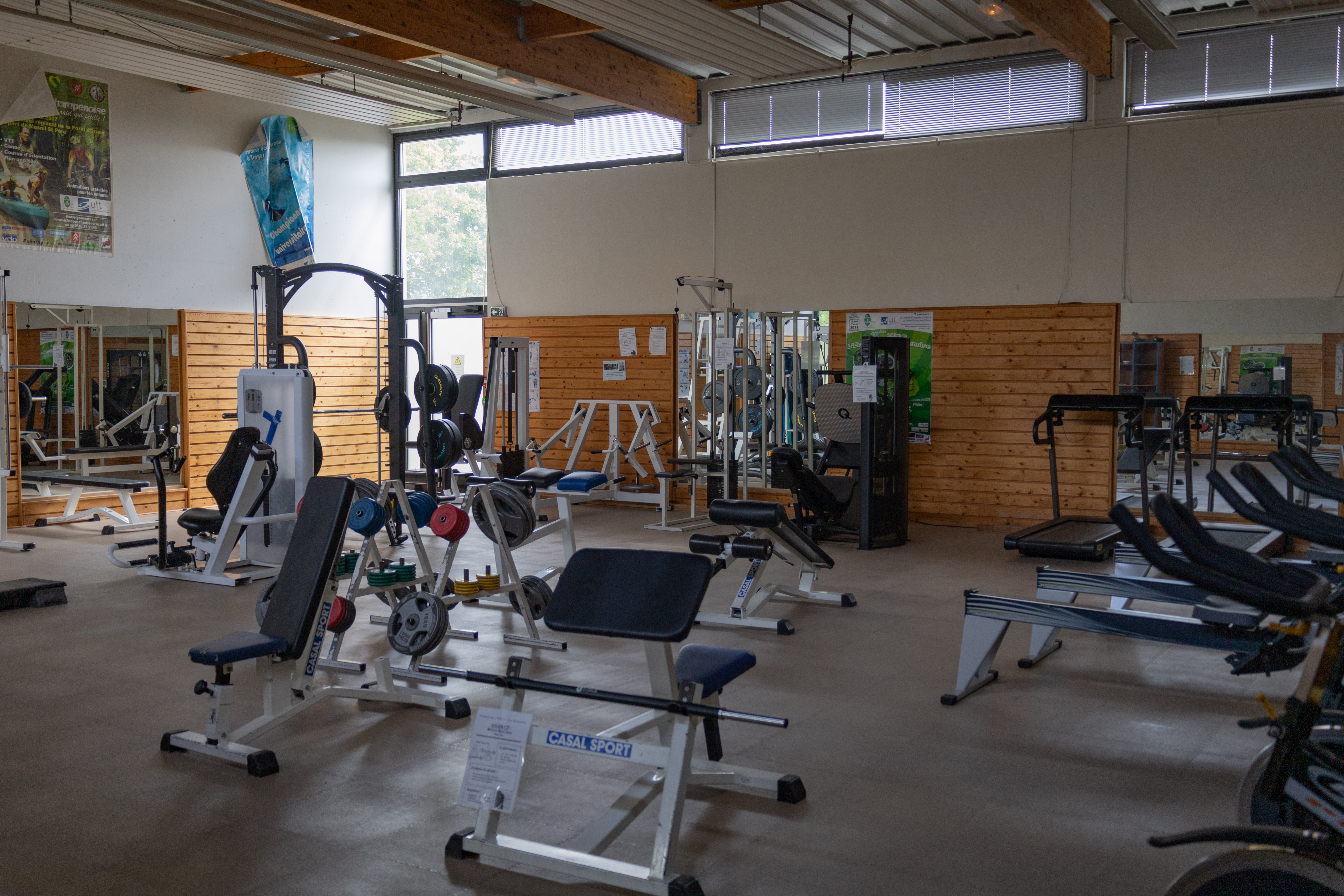- Une salle de remise en forme avec rameurs, vélos, tapis et autres appareils de musculation permettant un entretien physique adapté à tous les étudiants